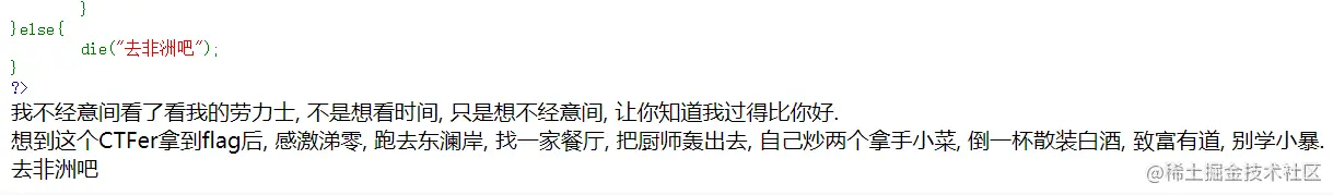 我们可以看到藏了个/fl4g.php,访问一下得到源代码;