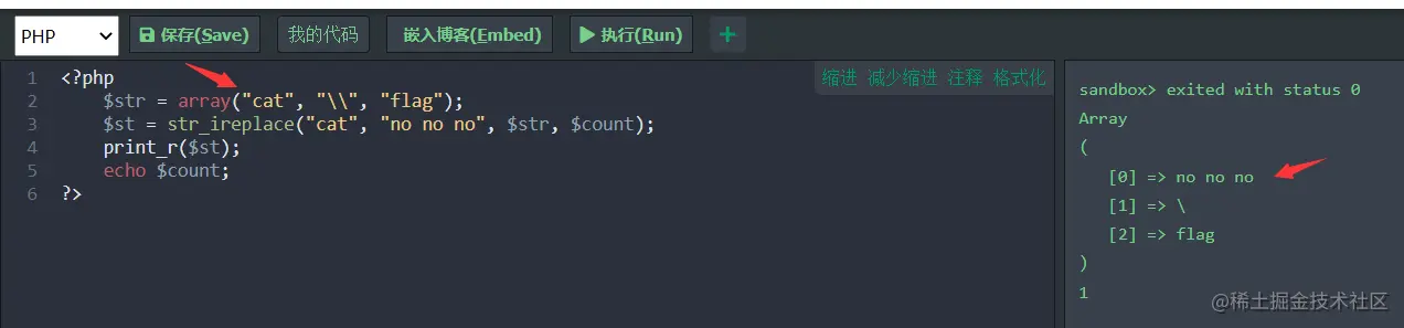 然后对于这道题,我们发现array里面过滤了很多函数,乍一看暂时想不到利用的方法,但其实我们很容易就可以绕过。分享以下两种解法: