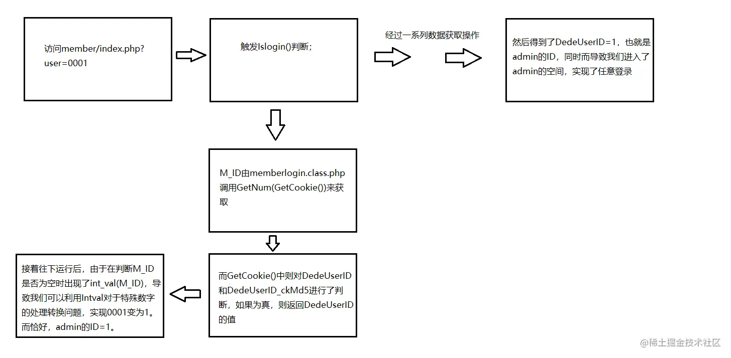 因此,我们设置M_ID=00001时,会通过intval()变为1,而1恰好就是admin的ID。那么我们得到了admin的M_ID之后,回到index.php进行后续的数据获取操作,从而进入了对应的空间。