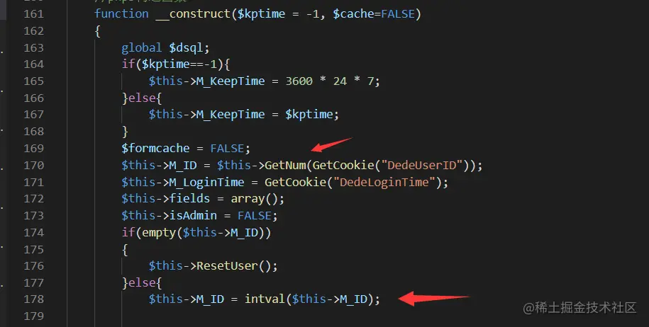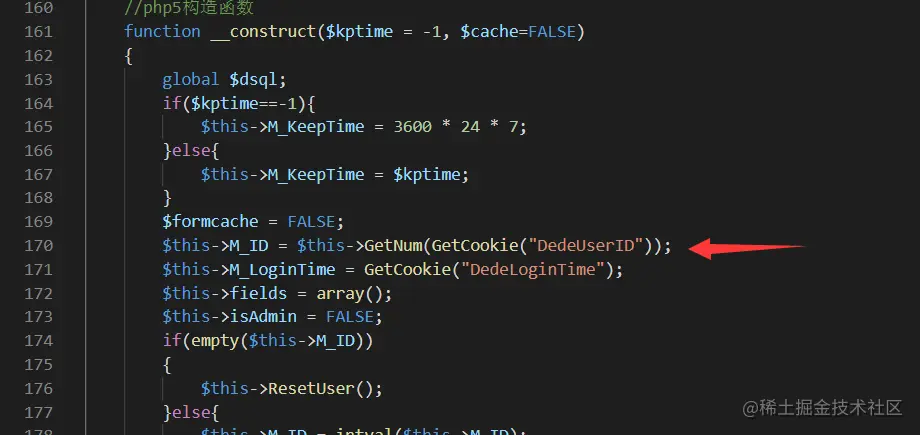 而M_ID又是来源于memberlogin.class.php中170行,通过GetNum(GetCooke("DedeUserID"))来获得;