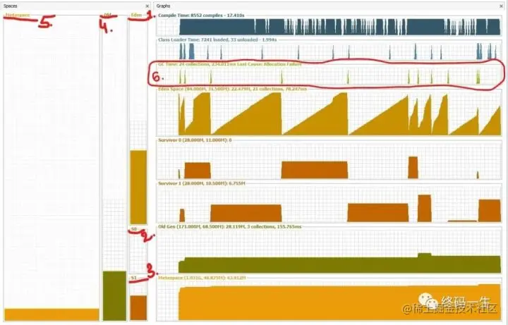综上所述,如果你看一下垃圾收集器图(6),每次它运行时,你可以看到对象切换到幸存者空间并且伊甸园空间获得了空间。等等等等。老年代也可以被垃圾回收,但由于与伊甸园空间相比,它占据了更大的内存部分,因此不会经常发生。Metaspace (5)用于在 JVM 中存储有关已加载类的元数据。