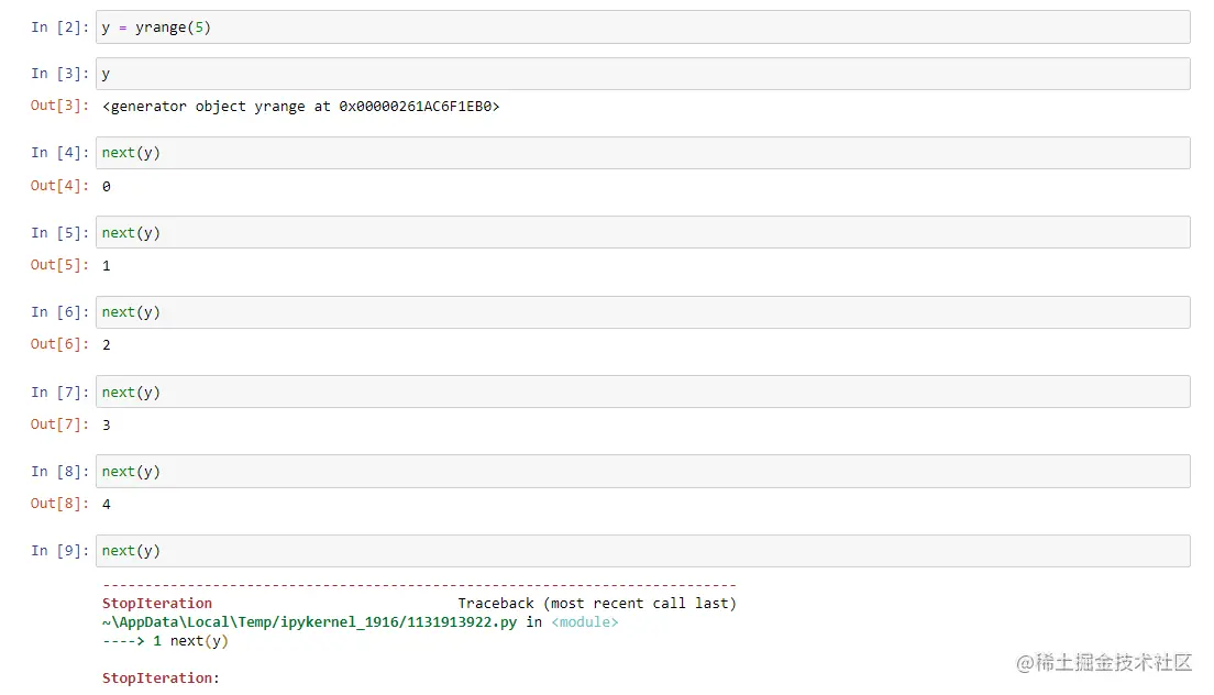 - 在前面的示例中,我们通过引发异常来停止迭代,但这并不是用户想看到的,谁想看到报错呢。因此,结束迭代的更好方法是使用