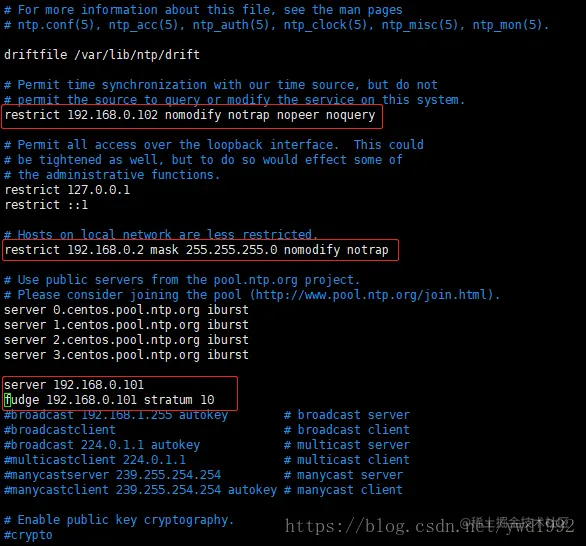restrict 192.168.0.101 nomodify notrap nopeer noquery //当前节点IP地址