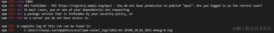 执行命令:npm publish