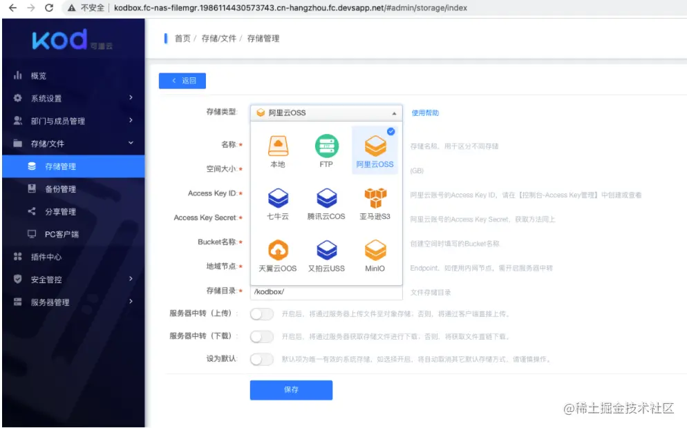 - 使用 admin 账号登录, 进入后台存储管理, 添加适合自己的存储, 比