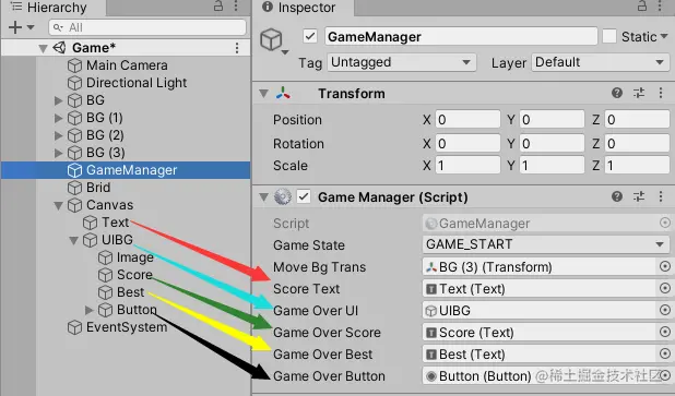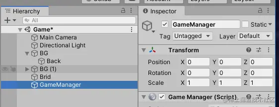 给GameManager公有变量拖住赋值: