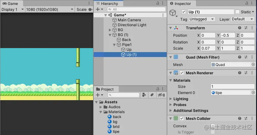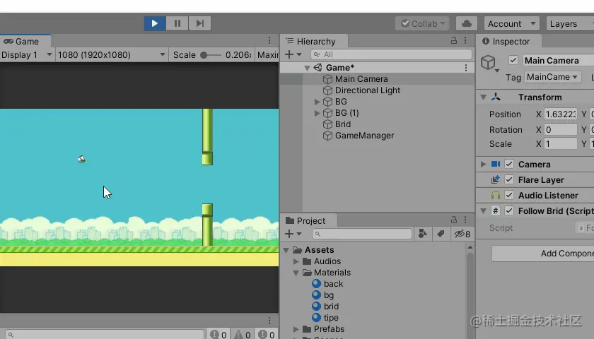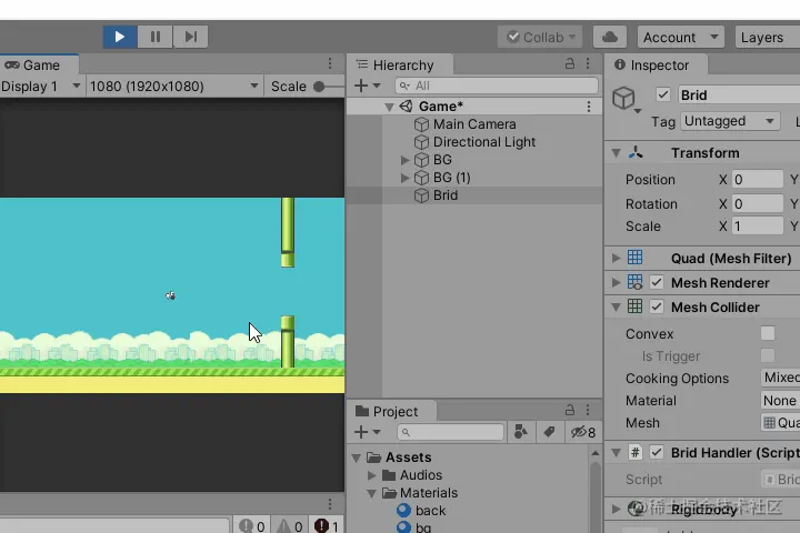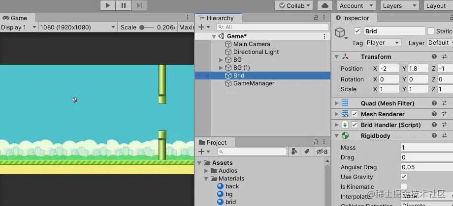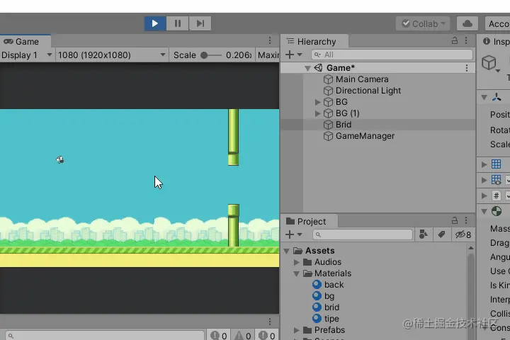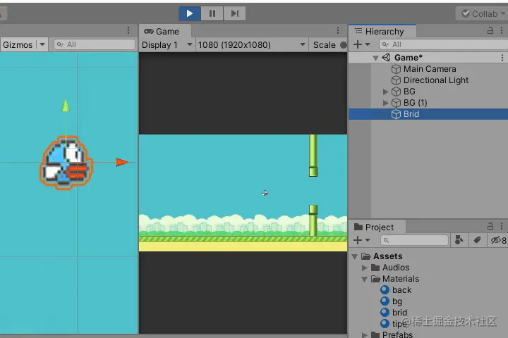 爆肝了好三天,终于写完了。本来是想着拿之前做的项目直接来写教程的;写着写着发现了很多做的不好的地方,又重新整理修改。其实完全就是重新做了一个项目。文章从新建工程开始一步步带你完成零基础也能制作的像素鸟游戏。还原经典玩法,一起来尝试下吧~