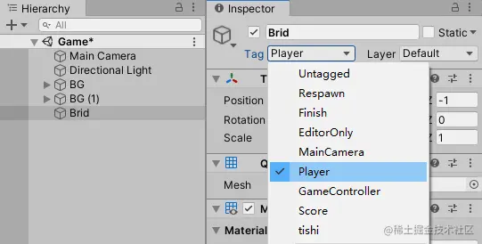 6.2 设置Brid的Tag标签为Player: