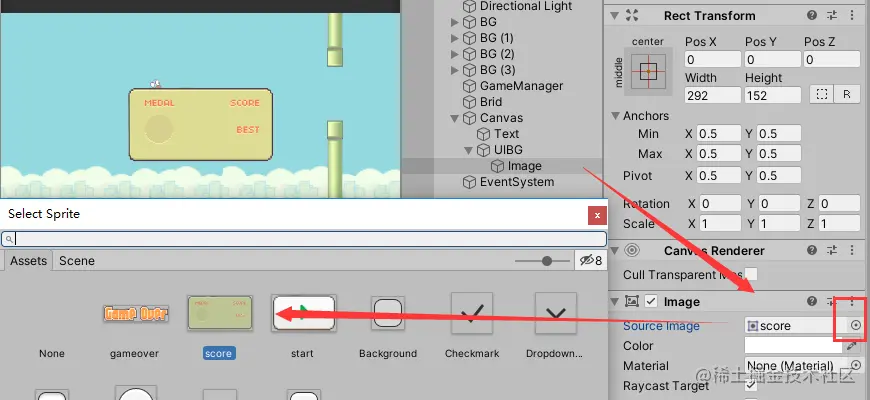 在"UIBG"下创建再创建一个Image作为分数背景板,将score赋值给它: