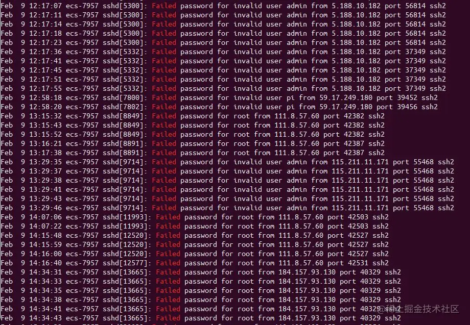 首先看/var/log/secure文件,里面有大量的密码猜测攻击,也包含用户那几次密码输入错误。