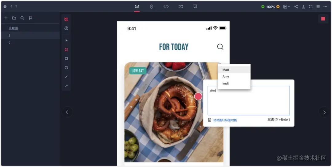 本次更新,对图钉评论的@功能进行了优化,支持根据首字母、全拼等方式模糊搜索用户,将评论消息快速提及相关成员。