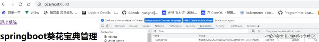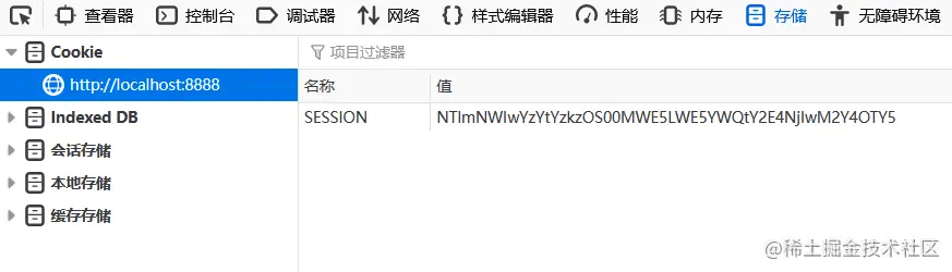 重启项目,再次进行登录查看cookie保存的SessionID
