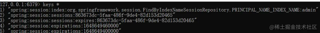 启动项目,进行登录,然后在redis的客户端输入**keys ***查看保存的session信息