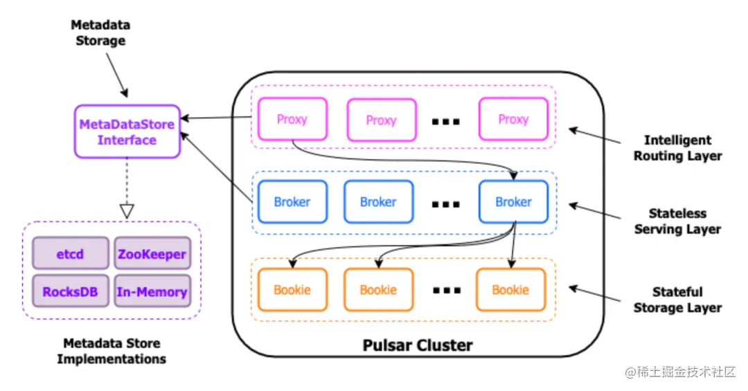 图 1:支持开发不同的 MetadataStore 接口实现方式,从而用接口来代替对 Apache ZooKeeper 的直接依赖,并提供了用户根据自身环境选用的灵活性。