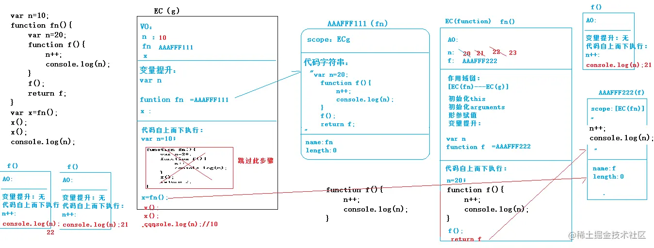 - 初始作用域链:<自己的上下文(执行产生的),函数的作用域(创建时候声明的)>