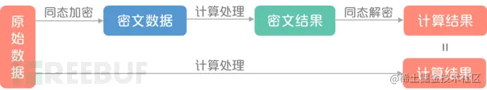 由上图可以看出,同态加密与一般的加密方案的不同之处在于,它关注的是数据处理安全。同态加密提供了一种对加密数据进行处理的功能。