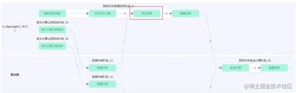 执行作业,可以看到TICS系统的DAG图中,展示了同态加密的全部过程。 输出结果与非同态场景一致。