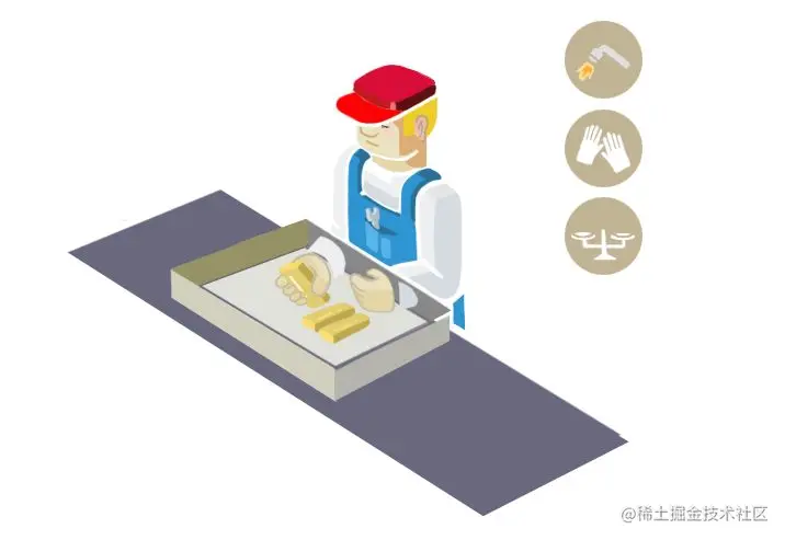 - 工人可以带着这个手套,对盒子内部的金子进行处理。但是盒子是锁着的,所以工人不仅拿不到金块,连处理过程中掉下的任何金子都拿不到。