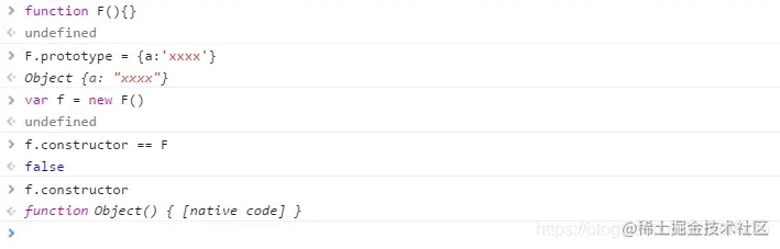 当执行 var f = new F()时,F被当成了构造函数,f是F的实例对象,此时F原型上的constructor传递到f上,因此f.constructor == F