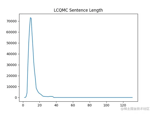 LCQMC数据集的长度分布如下: