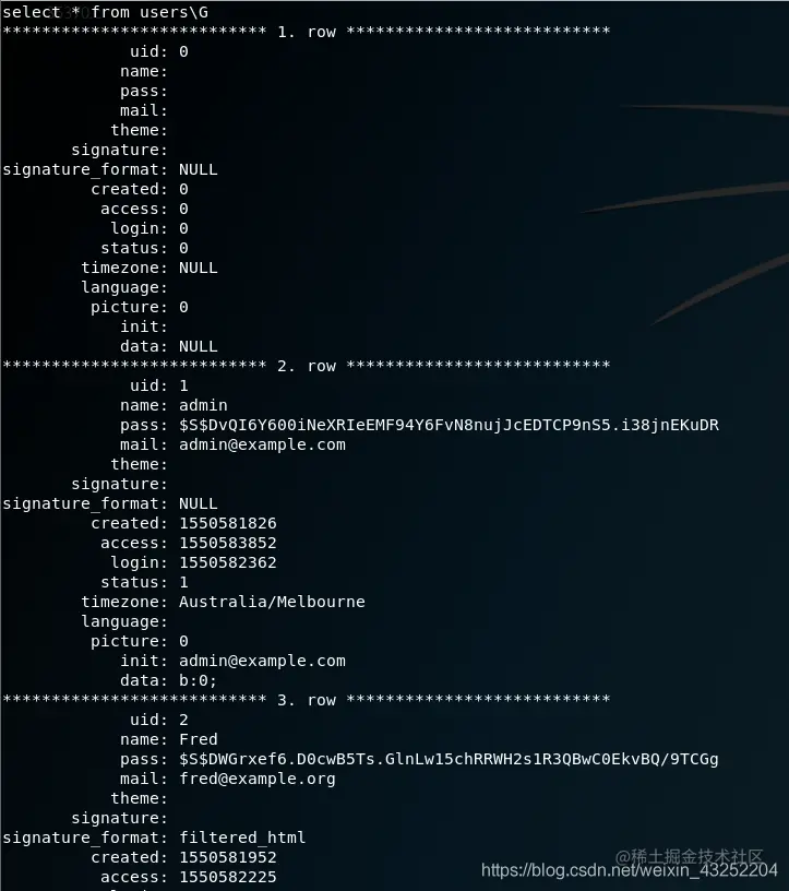select * from users\G