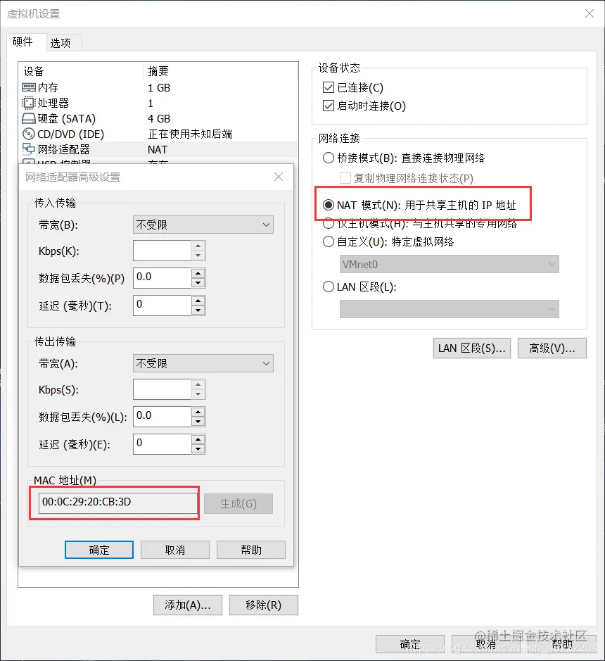 靶机使用NAT 模式,得到其MAC地址