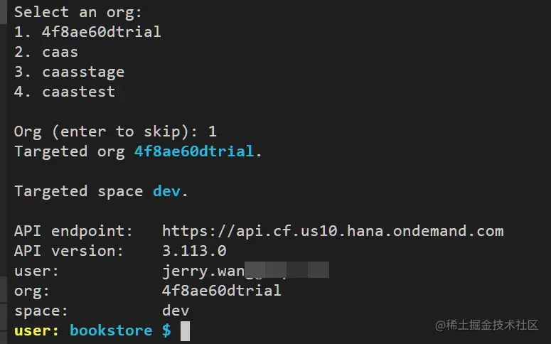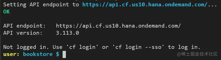 Setting API endpoint to api.cf.us10.hana.ondemand.com/... OK