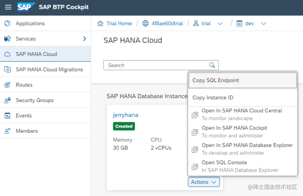 将应用程序部署到云时,Cloud Foundry 将通过 Open Service Broker API 将凭据作为服务绑定提供给应用程序。 同样在这种情况下,CAP Java 将自动获取 SAP HANA 凭据并为您配置应用程序,您将在下一个教程中看到。