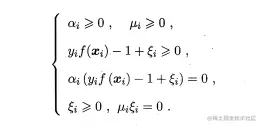 其中,①②③是软间隔的目标函数及其约束条件,其余求解过程和硬间隔见下面)一致。
