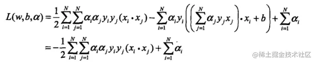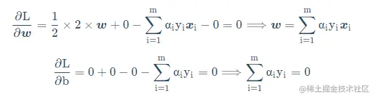 ****是拉格朗日乘子,求解方程组(条件极值的解法),令L对w,b的偏导为0: