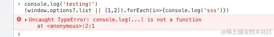 log('testing!')(options.list || []).forEach(function(i) {})