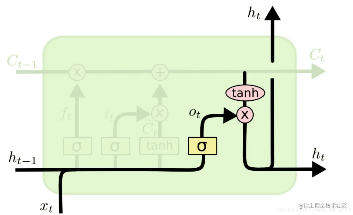 最后,我们需要确定输出的值,这个输出会基于细胞状态。