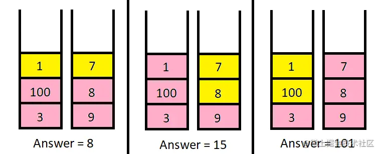 根据题意,桌子上有 n 堆硬币。 每堆由正数个各种面额的硬币组成。我们只能操作一次,可以选择任何一堆硬币上的硬币,将其取出并将其添加到钱包中。