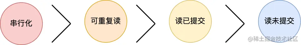 SQL 标准提出了四种隔离级别来规避这些现象,隔离级别越高,性能效率就越低,这四个隔离级别如下: