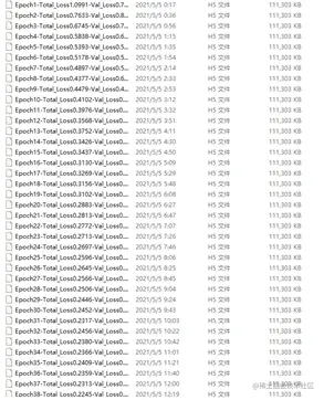 由于FASTER RCNN没有采用传统的方法,而是通过RPN生成待检测区域,这样在生成ROI区域的时候,运行的时间相应减少了。我们使用标定结束的数据集放入建立好的FASTER RCNN目标检测网络,设置好训练的次数,权值文件保存的路径,运行train.py次数越多损失的值就越小,相应的运行的时间也会增加,同样会出现过拟合的现象。经历大概10多个小时的训练后,便得到许多的权值文件,每个权值文件都包含了这一次训练的各种评判参数,根据损失值的大小可以选取合适权值文件作为预测的权值文件。程序运行过程和每一次运行生成的权值文件如图所示: