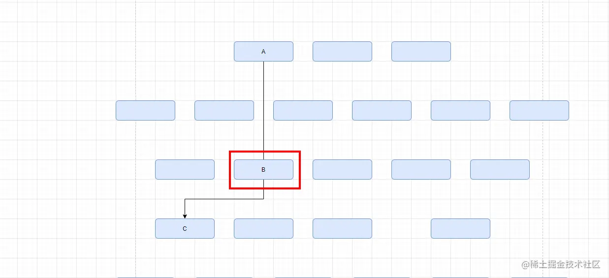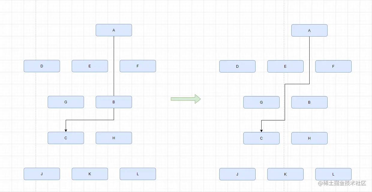 这种情况,由于简单版本,我们只在整条路径上添加了2个拐点,这种画法,当出现上述情况,线条就会被B挡住,实际的需求,我们要规避这种节点,绕开。