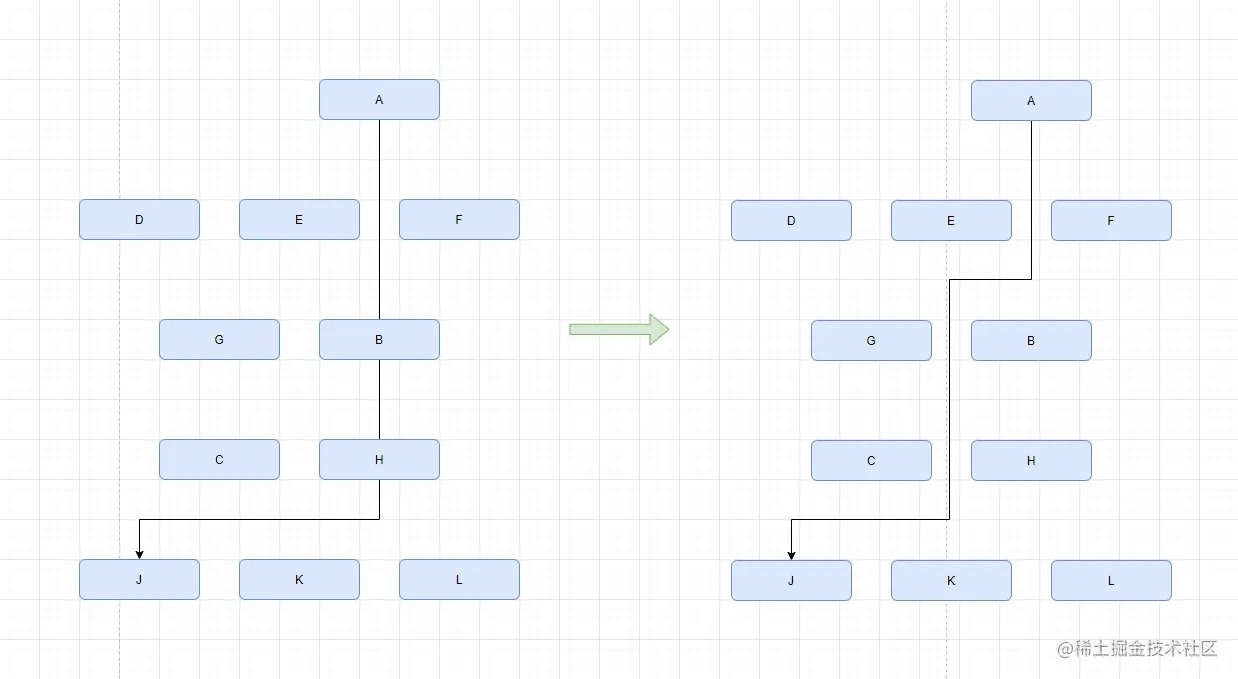上个版本简单的连线在一些复杂场景,尤其层级比较多,连线跨层级比较多的情况下,会出现线条会穿过矩形的情况,这一讲就是在这个基础上,去优化这个连线。