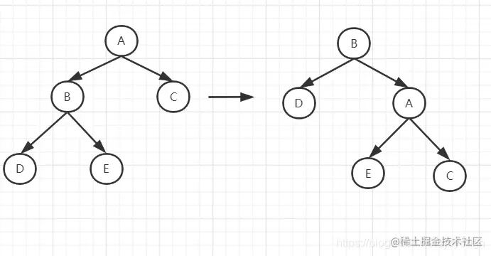 - 将原来B的右子树接到新的A的左子树的位置