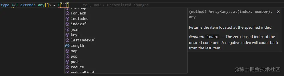 [any, ...T]组成了一个新的元组类型 - 使用索引访问类型可以获取对应的属性,只要是数组上的属性,都可以使用: