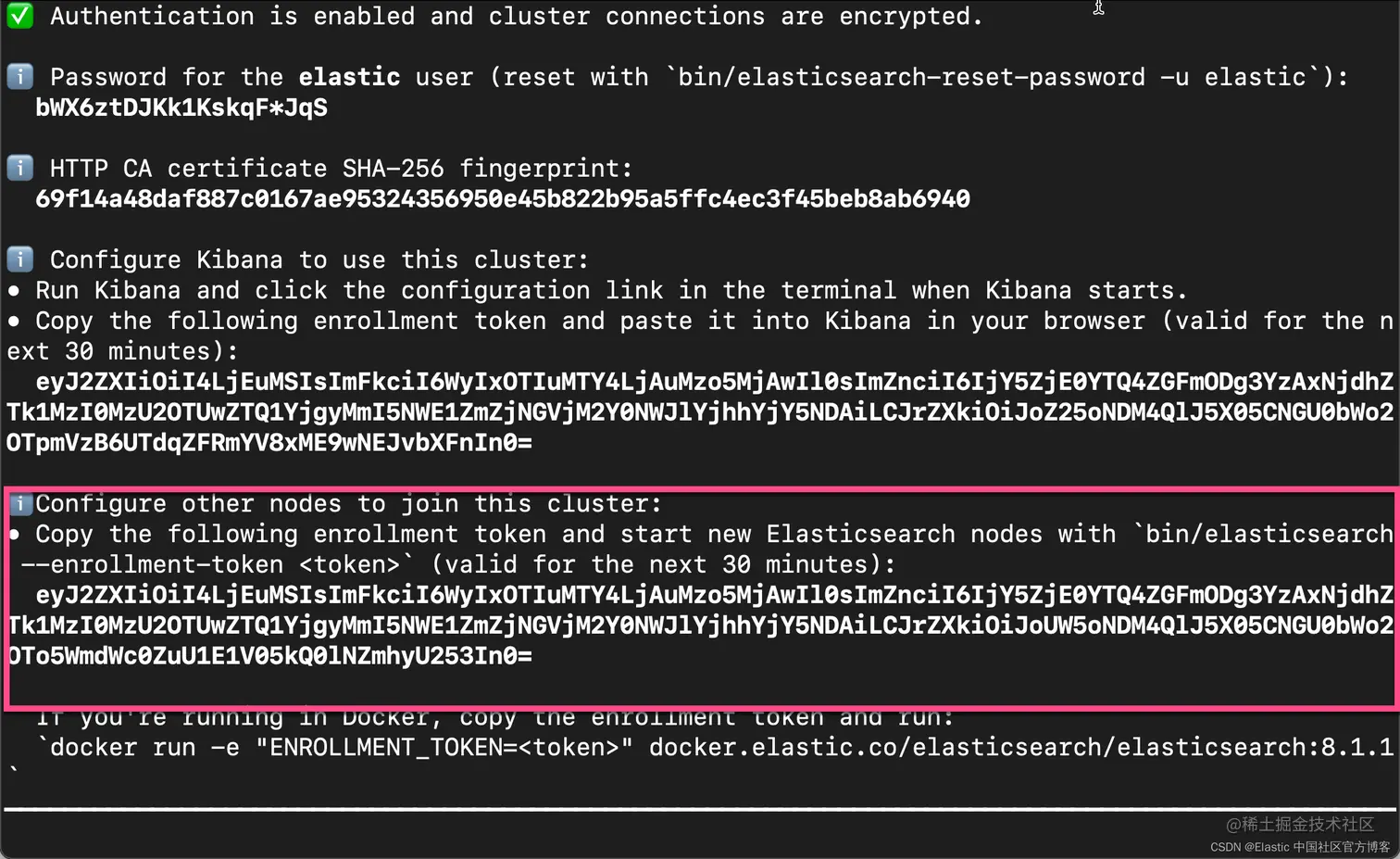 另外:这个 enrollment token 必须是一个已经正在运行的 Elasticsearch 集群里的 elasticsearch 所生成的 token。
