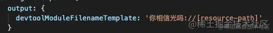 这个路径是可以配置的,这其实就是 webpack 生成 sourcemap 的时候的文件路径,可以通过 output.devtoolModuleFilenameTemplate 来配置: