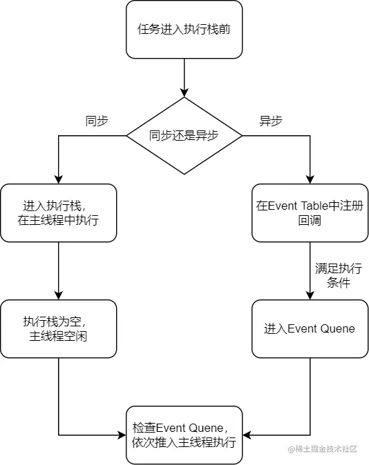 - 先判断任务是同步任务还是异步任务,同步任务就推入主线程(执行栈)直接进行执行,异步任务就在Event Table进行注册;