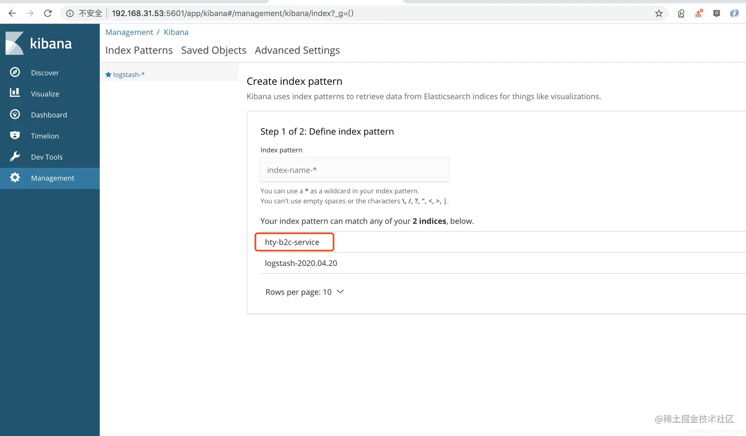 成功的截图,es自动创建了服务的索引,接下来就是kibana的一些查询操作了。