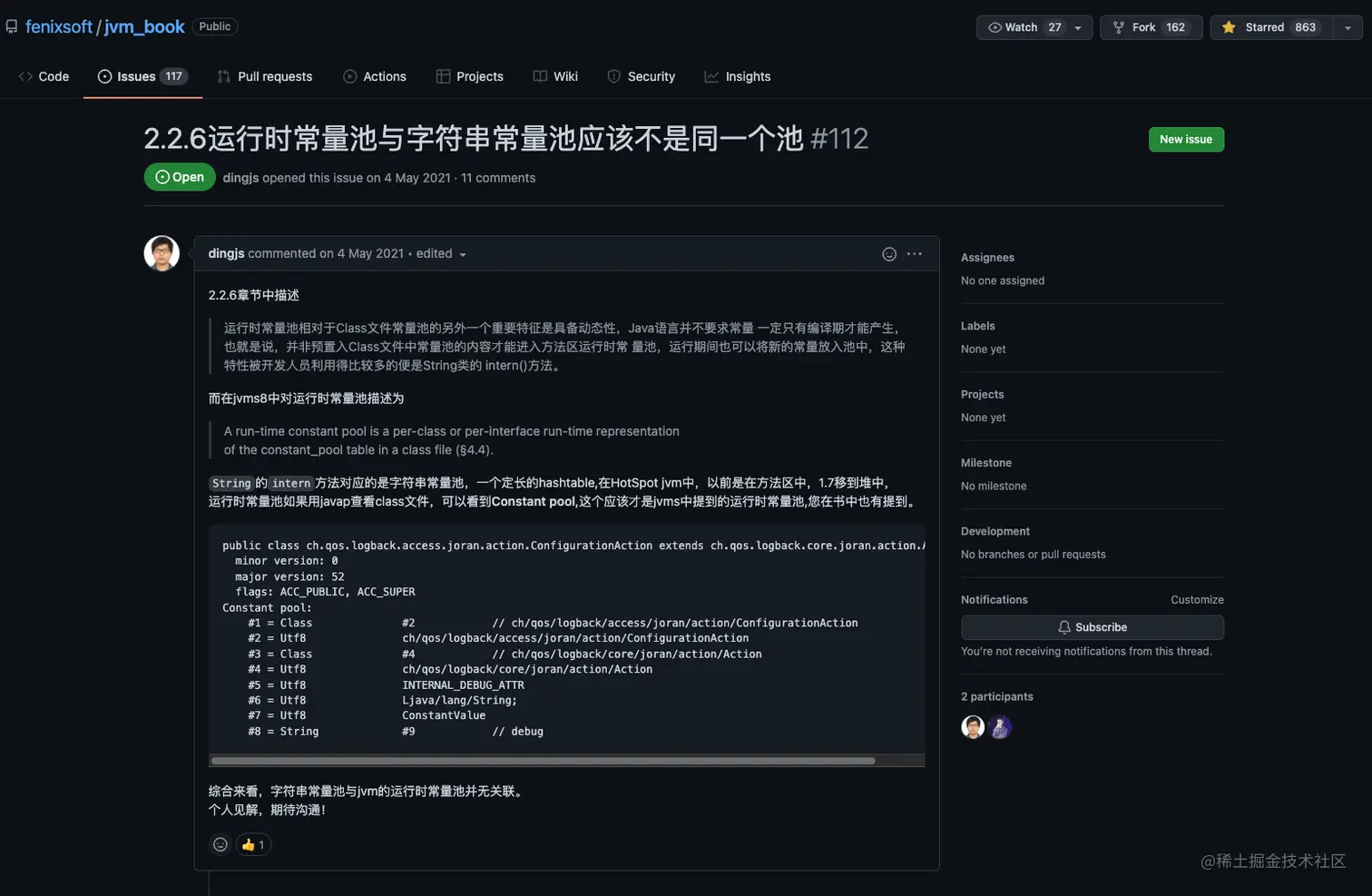 多提一嘴,为了完善方法区这部分内容的介绍,我看了很多文档,还特意去扒了一下《深入理解Java虚拟机(第3版)》勘误的 issues,简直看到的脑壳疼。。。