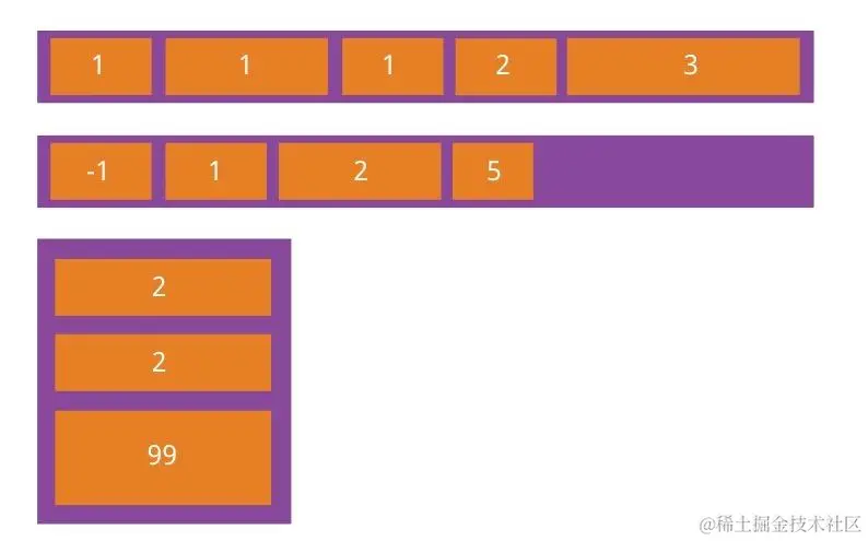 order 属性定义项目的排列顺序。数值越小,排列越靠前,默认值为 0,可以为负数。order: -1;